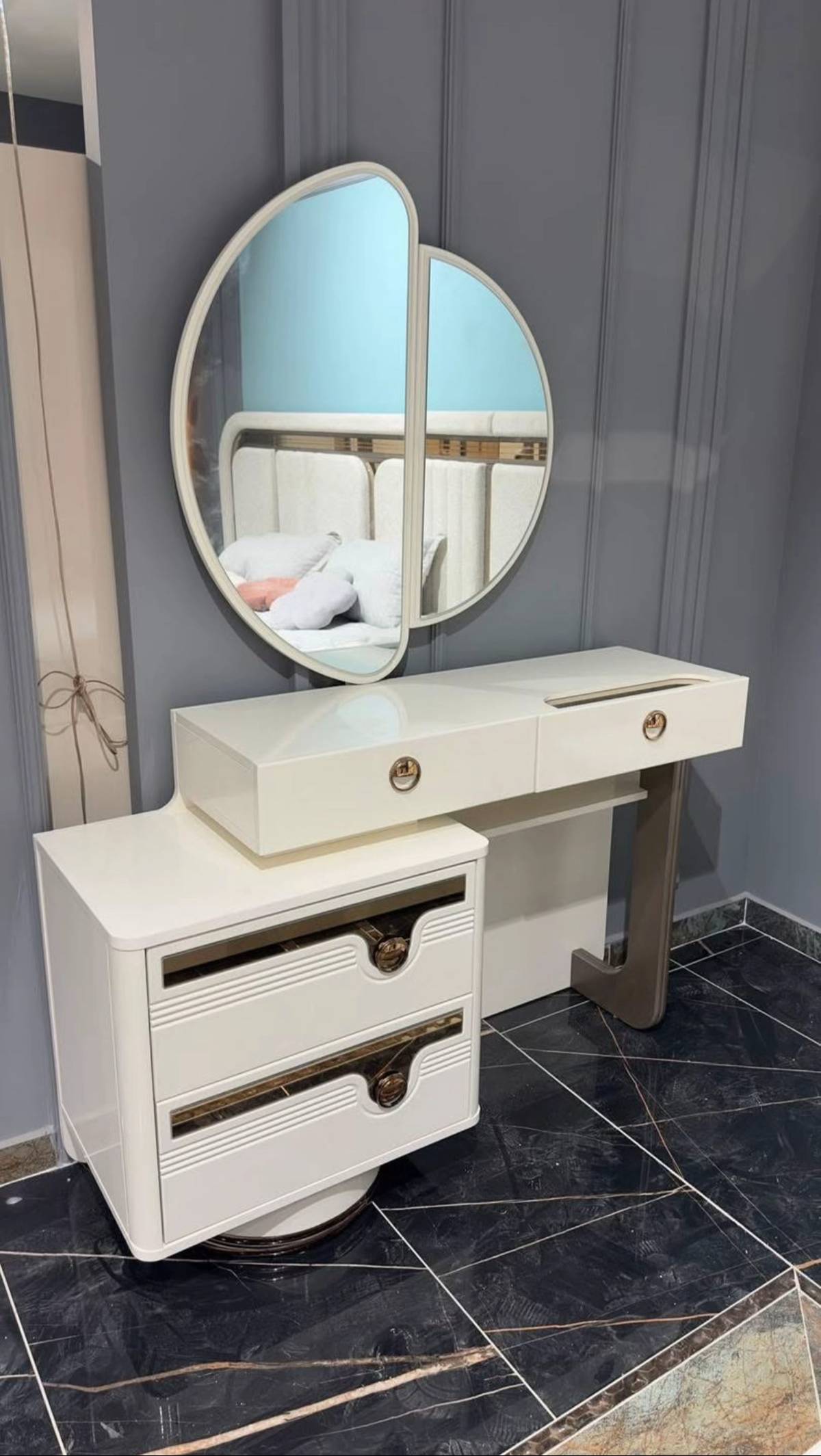 Dressing Table: Includes a spacious tabletop and mirror, combining practicality with elegance.